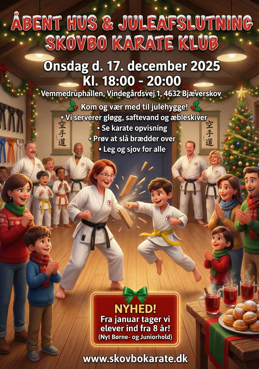 Kom og vær med til julehygge! • Vi serverer gløgg, saftevand og æbleskiver • Se karate opvisning • Prøv at slå brædder over • Leg og sjov for alle